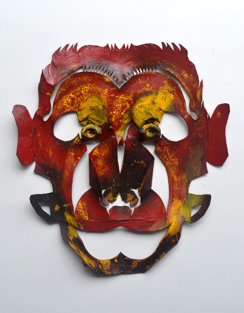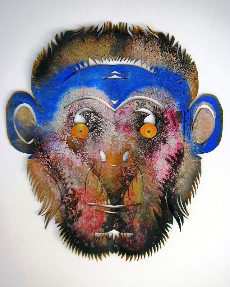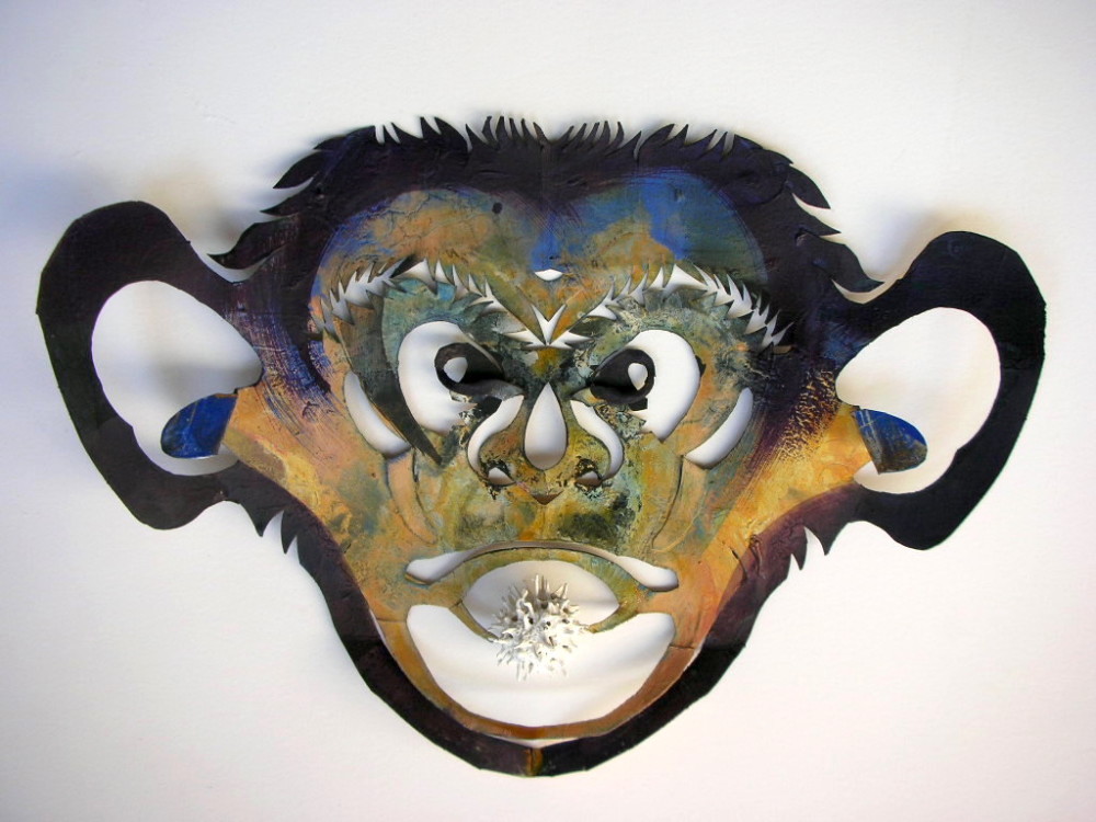 Monkey who never saw a man Monkey series 2010 Enamels pigments seeds on paper and wood 15 X 12 in – 28 X 30 cm…