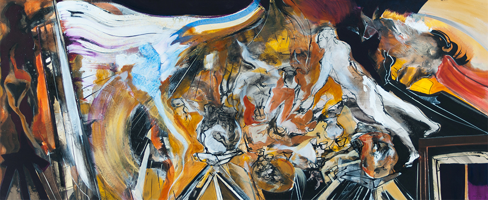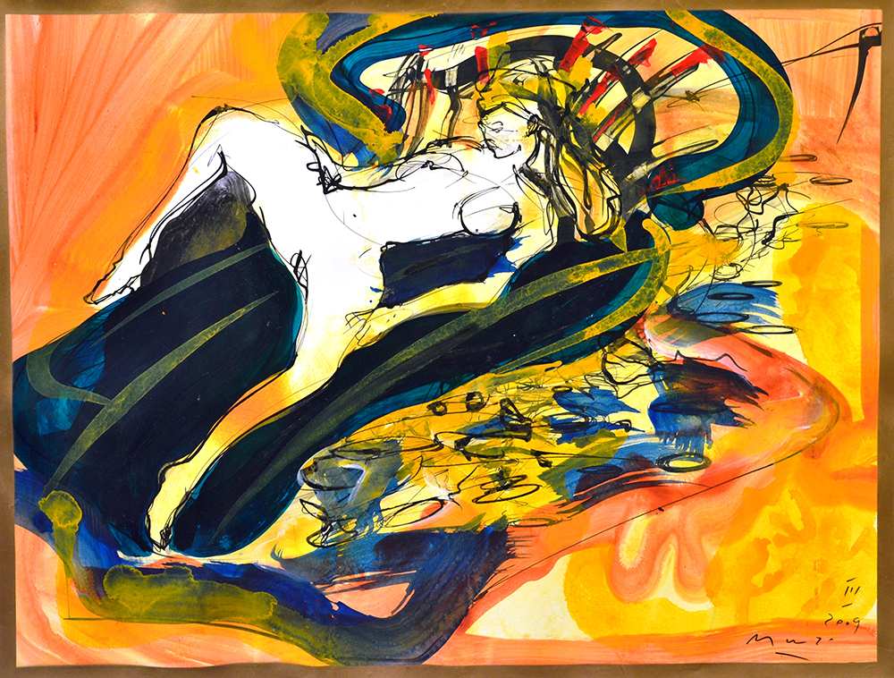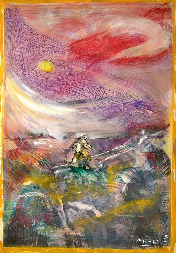 The birth of the Angel Long format series 2009 Ink gouache and pigments on paper 24 X 60 in – 56 X 144 cm Private collection BA…