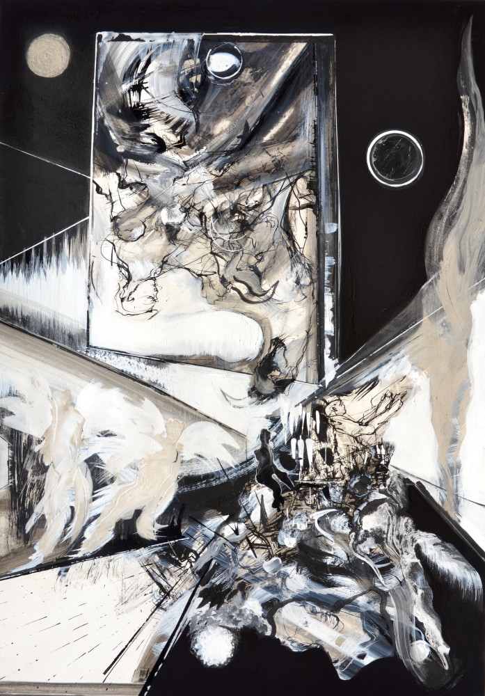 Reach seven Réquiem in Black and White series 2007 Ink pigments gesso and volcanic ash on paper 28 X 40 in – 71 X 102 cm…