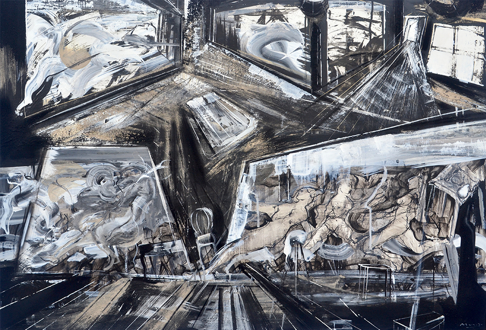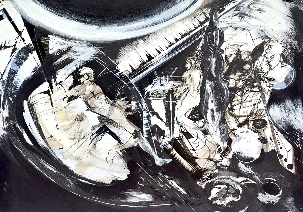 Bed inside Réquiem in black and white series 2007 Ink pigments gesso and volcanic ash on paper 28 X 40 in – 71 X 102 cm…