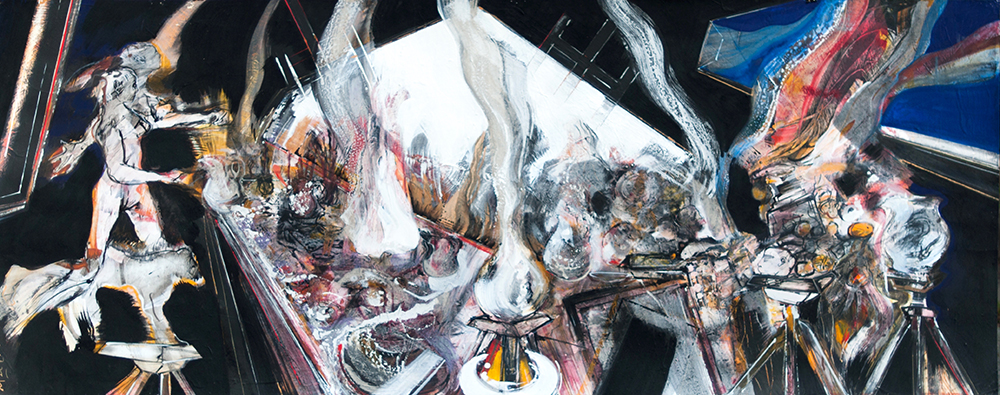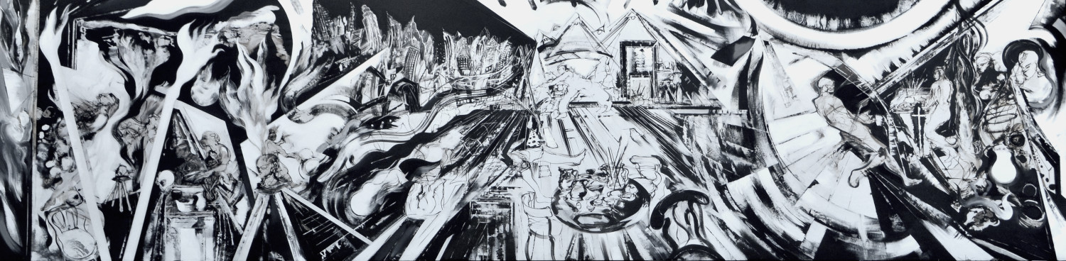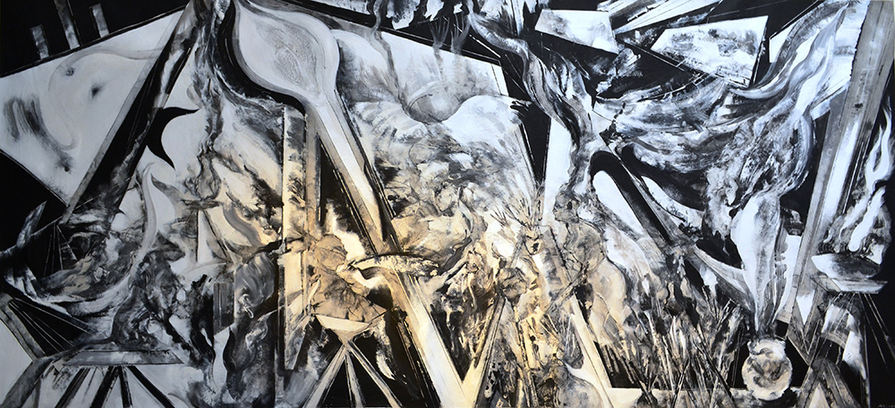 Large Formats Eternal II Requiem in white and black series 2015 Mixed media on synthetic canvas 80 x 239 in – 203 X 607 cm Private Collection NY Night After Night L.A. Landscape series 2017 Oil on canvas 64 X 124 1/2 in – 165 X 316 cm Private Collection NY Eternal I Requiem in Black and White series 2012 Mixed media on canvas 76 X 267 in – 193 X 678 cm Invictus 2011-2012 Mixed media pigments on canvas 65 X 156 in – 165 X 396 cm Hallelujah Requiem in Black and white series – 2010 Ink and pigments on canvas 110 X 267 in / 280 X 680 cm The stained dress Long format series 2010 Ink gouache and pigments on paper 29 x 82 in – 74 X 208 cm The flame is always burning Long format series 2010 Ink gouache and pigments on paper 29 x 82 in – 74 X 208 cm With elephants help Long format series 2009 Ink gouache and pigments on paper 24 X 60 in 56 X 144 cm Private collection BA The birth of the Angel Long format series 2009 Ink gouache and pigments on paper 24 X 60 in – 56 X 144 cm Private collection BA Mirror Long format series 2009 Ink gouache and pigments on paper 24 X 60 in 56 X 144 cm Requiem Long format series 2007 Ink gouache and pigments on paper 29 x 82 in – 74 X 208 cm